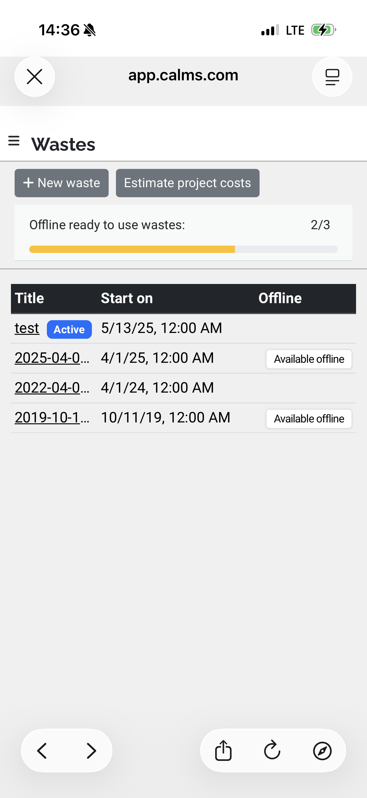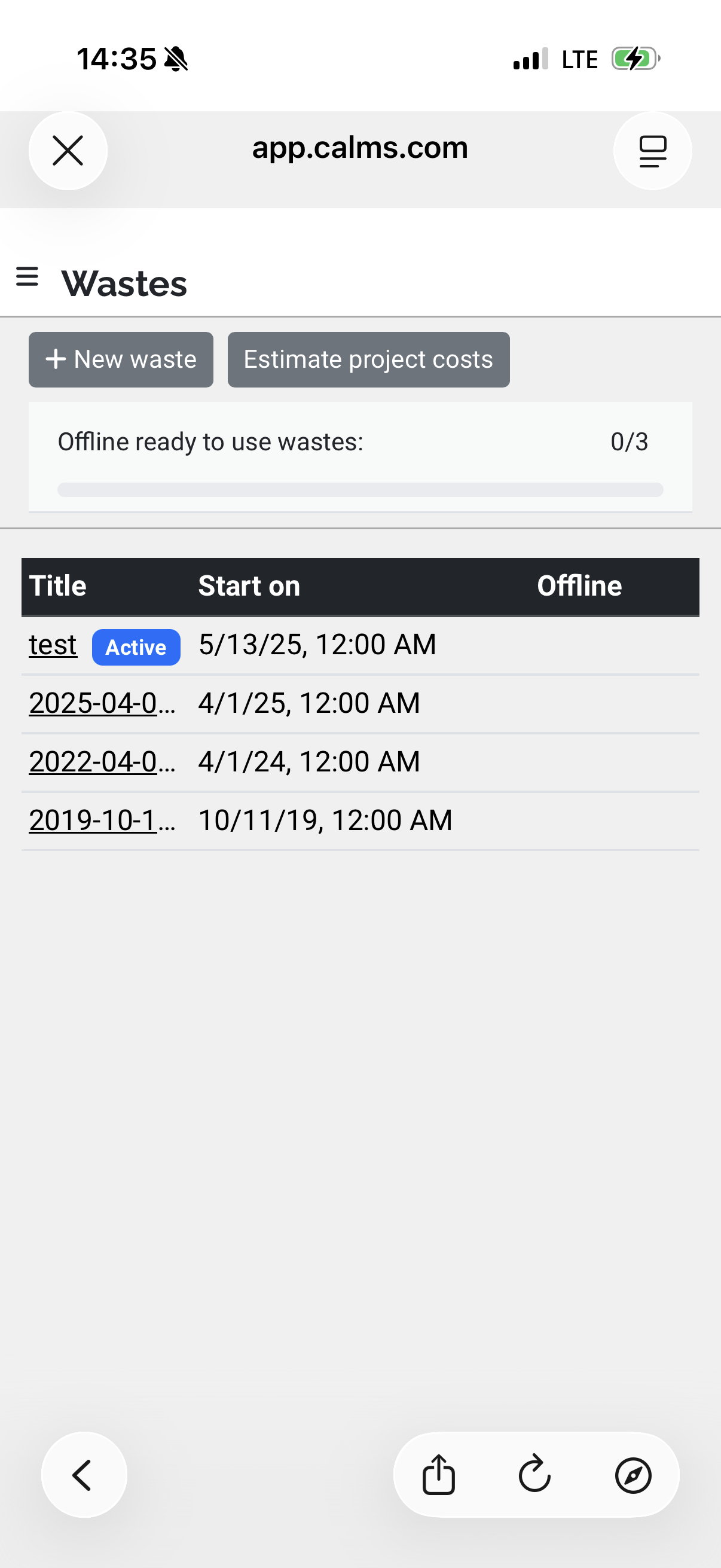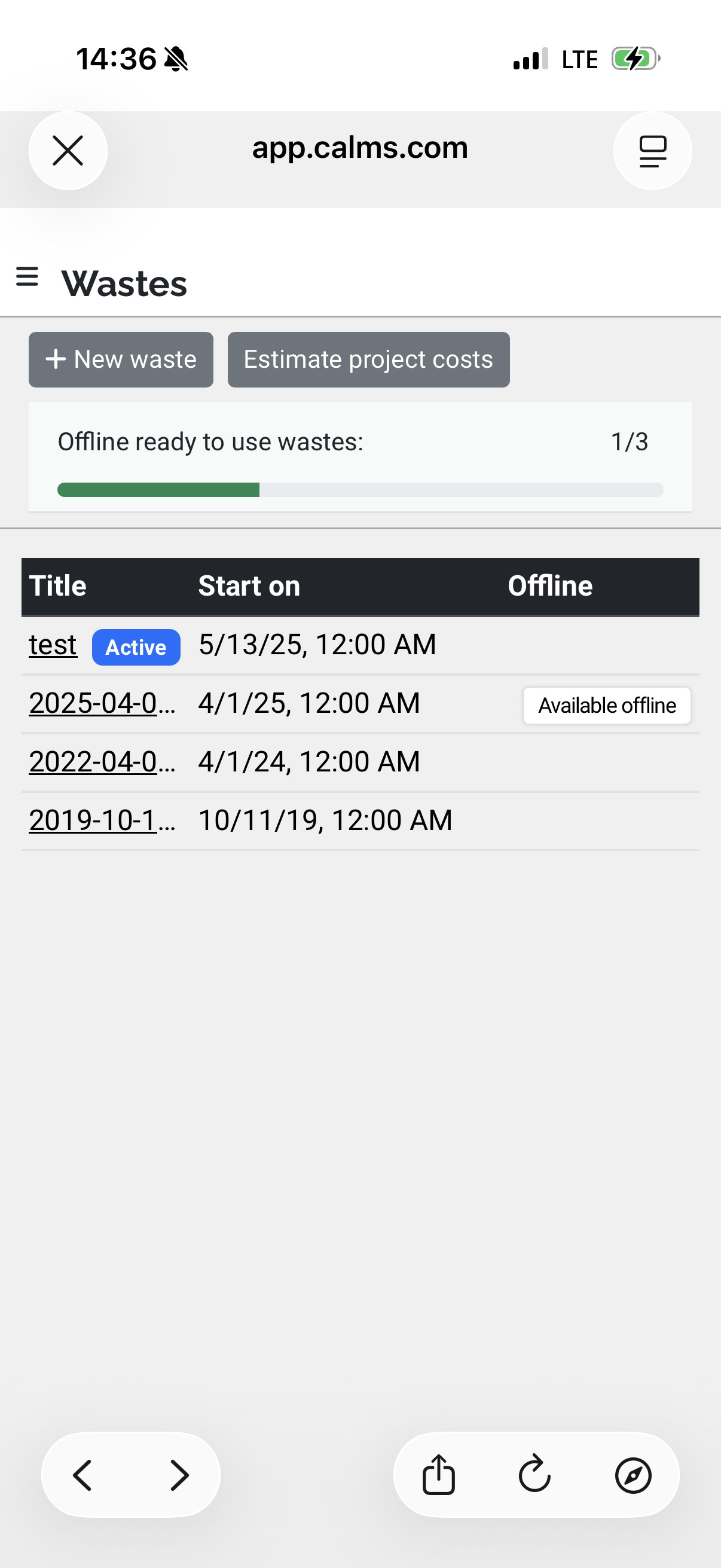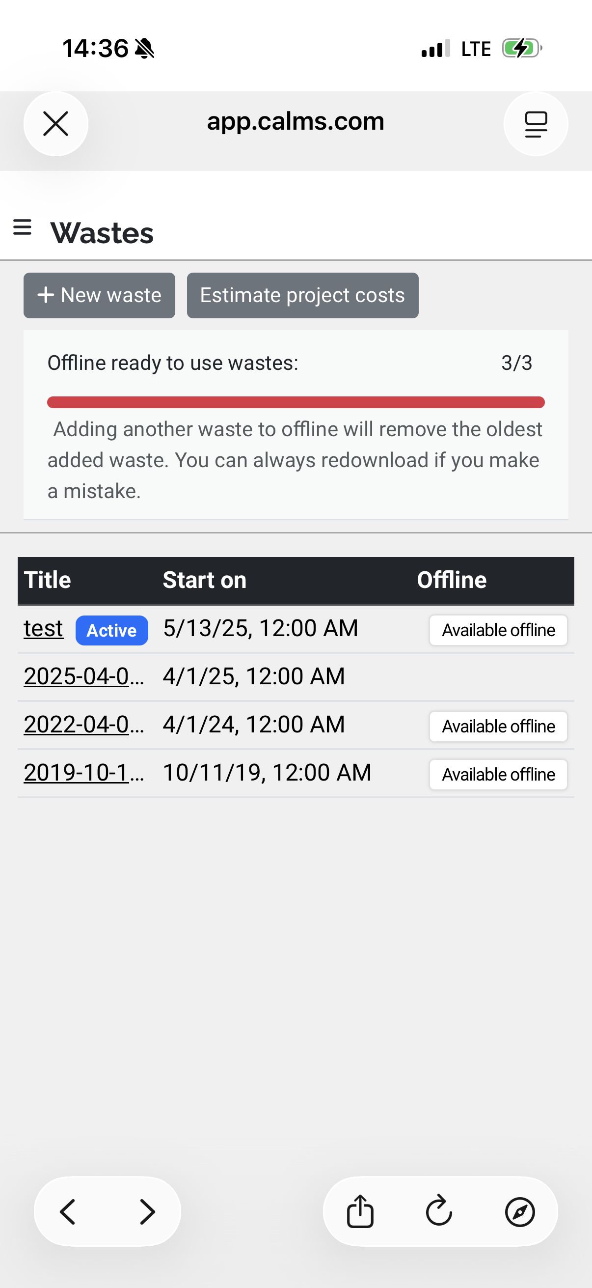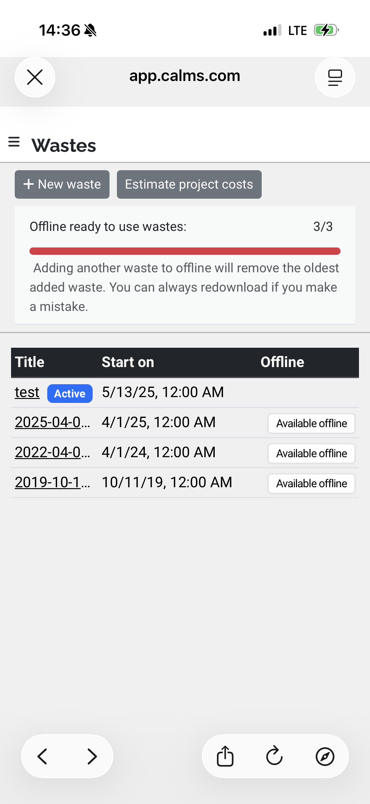 You will see a list of all wastes with an additional column labeled Offline, which indicates the wastes available for offline use.