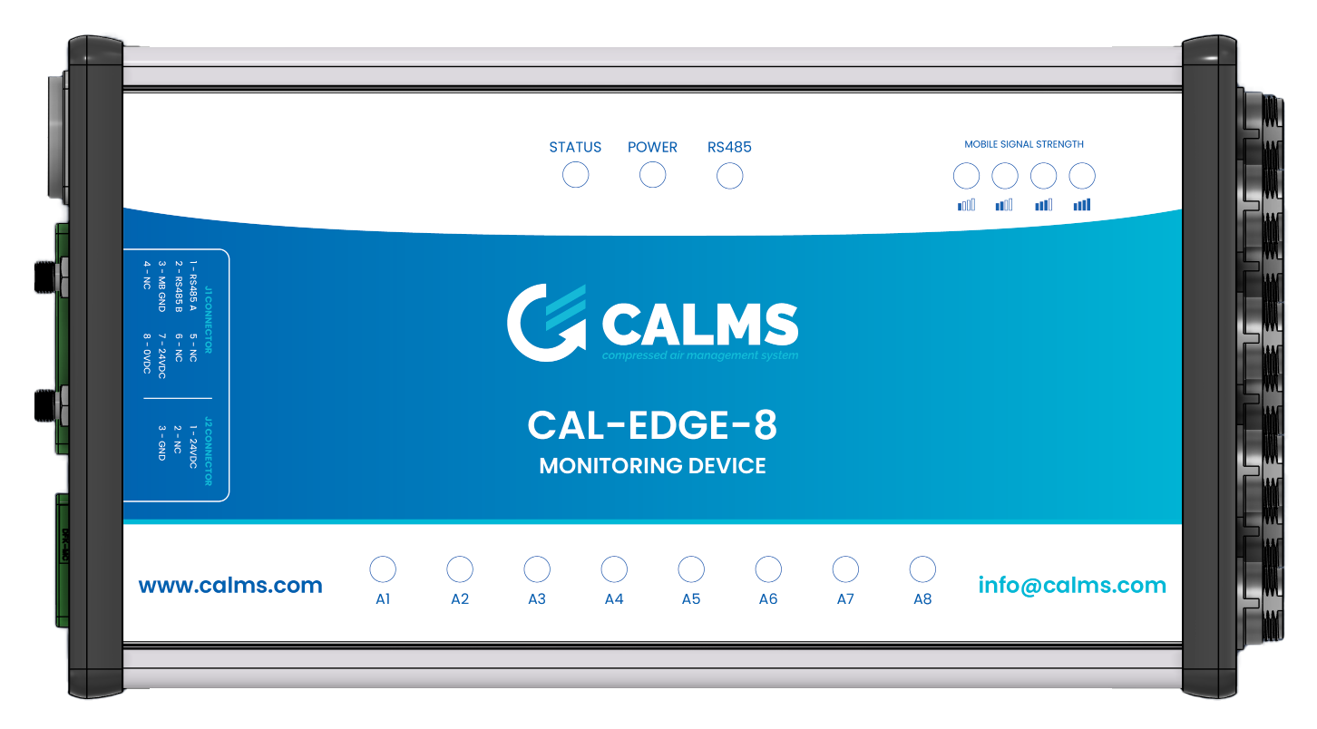 The CAL-EDGE-8 device is a highly sophisticated and affordable portable measurement data logger for compressed air systems, designed for experts and auditors. The device connects directly to CALMS web application which provides real time access to data from any web browser for any end user and their service partner. With the new Wireless Mesh solution, the device can connect even to the most distant sensors WITHOUT any cables.